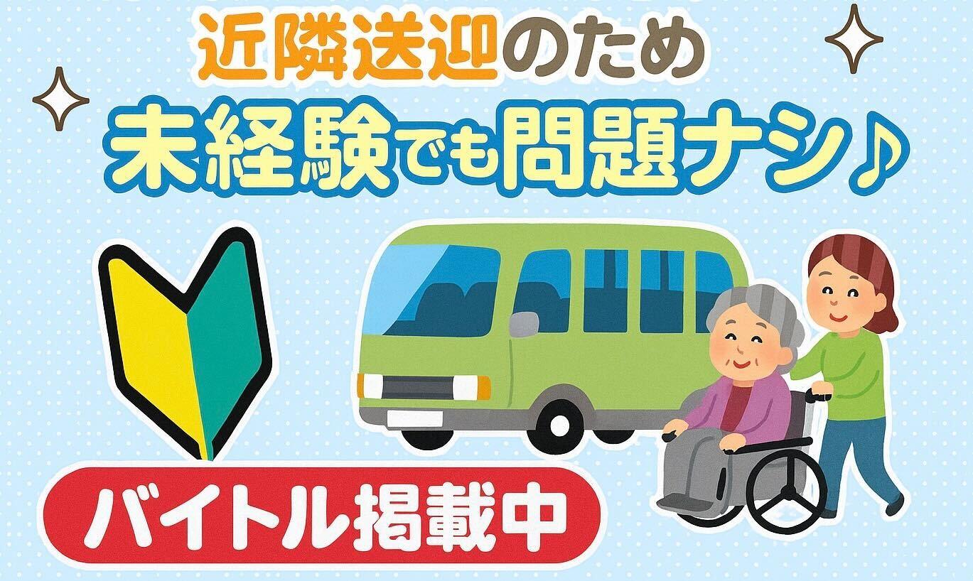 リハビリデイサービス での 送迎補助をお願いします! 未経験大歓迎◎ 最初に仕事内容のご説明をさせていただきますのでご安心ください! 手が空いたら他のお仕事をお任せすることもありますが その都度ご説明いたします。 分からないことがあればお気軽にお聞きください!